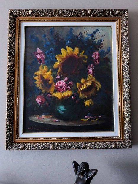 Orgona csendélet festmény 71x50 cm ,míves keretben, kortárs, jelzett
