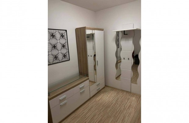 2részes modern sonoma-fehér előszobabútor
