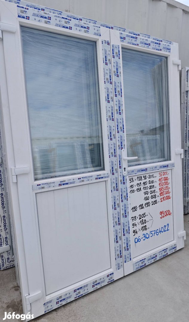 160x208cm félig üveges műanyag bejárati ajtó kétszárnyú raktár műhely