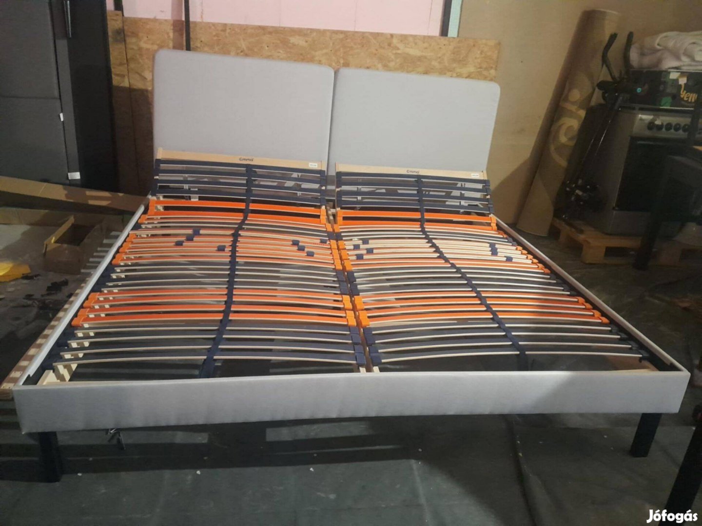 Eladó egy 200×200-as méretű szürke szinű fejtámlás textil ágykeret,2db ágyráccsal együtt.Matrac nélküli.