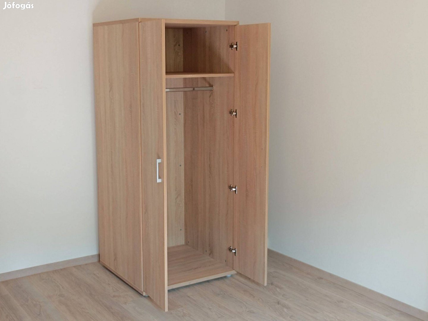 2 ajtós ruhásszekrény akasztós polcos stabil 80cm mély