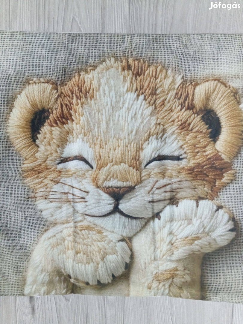 2 darabos díszpárna huzat szett hímzett hatású baba oroszlán mintával.