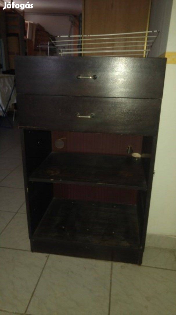 2 fiókos, polcos komód 60*100cm a képeken látható állapotban eladó. 44cm mély. szerkezetileg jó állapotban van, de karcok és kopás látható rajta.