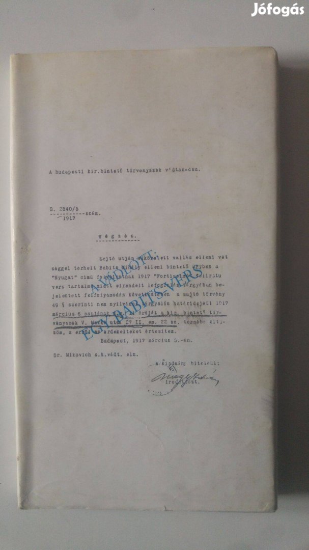 A vádlott: Egy Babits-vers (A Fortissimo-ügy aktái 1917)