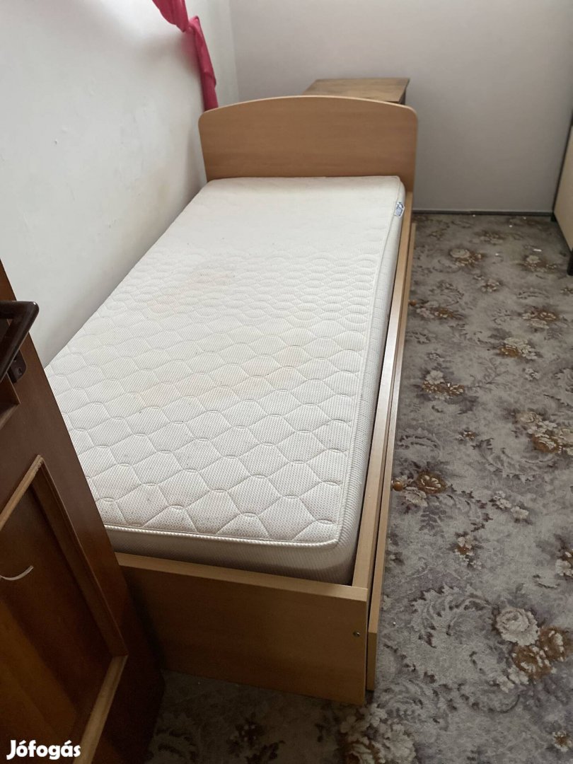 Ágyneműtartós egyszemélyes ágy, matraccal.