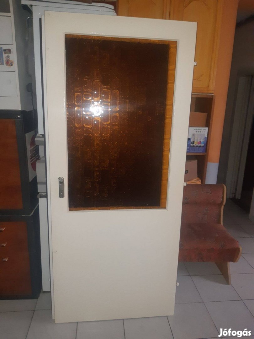 Ajtó bagoly sárga üveges tok nélkül 87x204,5cm fehér jobbos falcos zárral kilinccsel szép állapotban eladó.