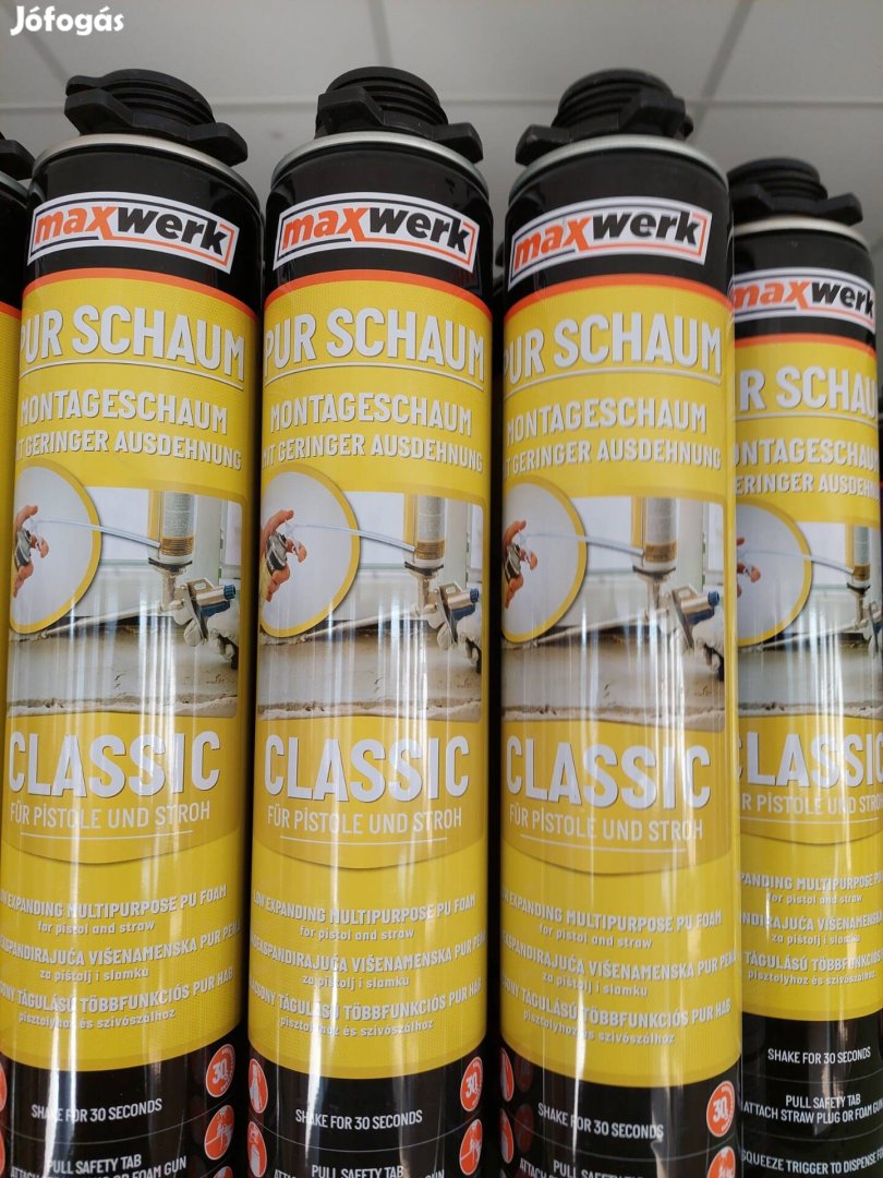 Eladó Maxwerk márkájú alacsony tágulású PUR hab, 750 ml kiszerelésben, készletről.