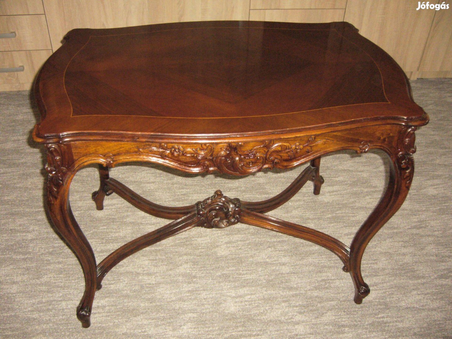 Kézzel faragott lábszerkezet és intarziás tetőlap !