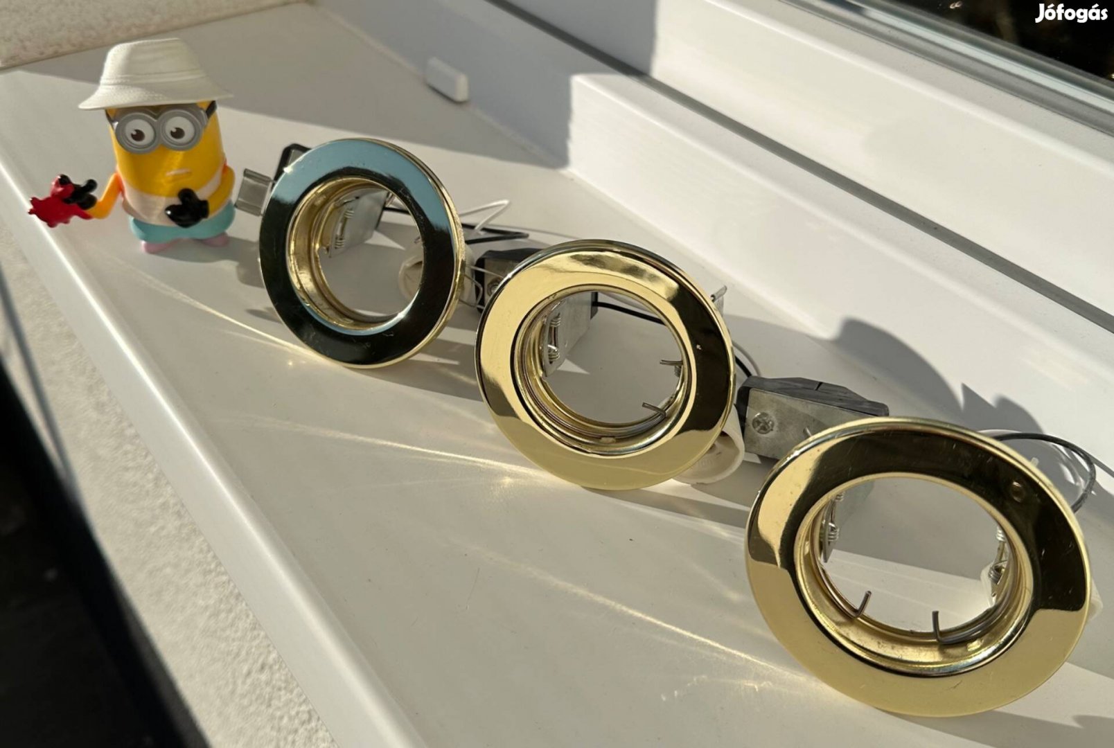 Eladó 3 db arany színű süllyeszthető spotlámpa, rugós rögzítéssel. GU 10 foglalathoz. használt, jó állapotú. Azonnal beépíthető.