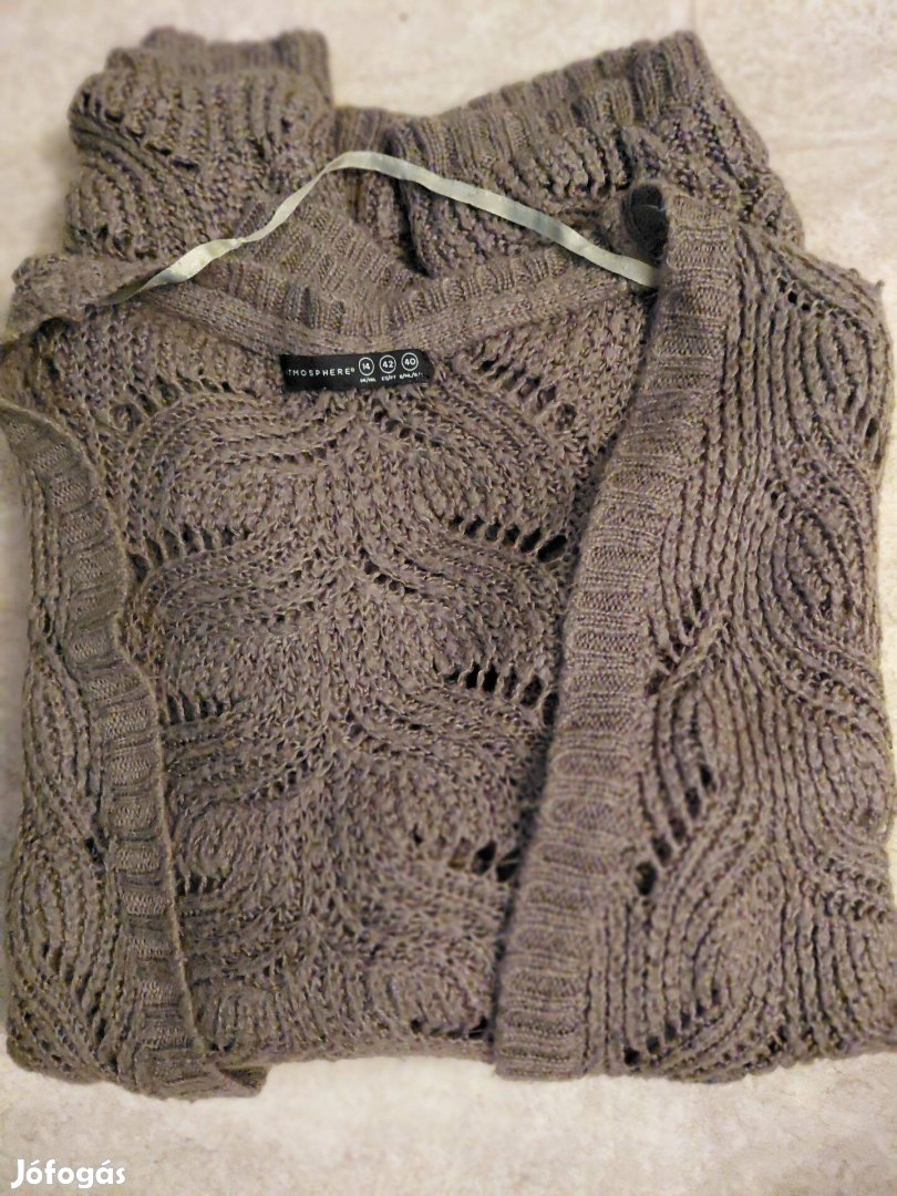 Atmosphere márkájú, minden évszakban jól kihasználható, vékony, puha kötött kardigán, khaki színben. A címkében 14-es méret van, de én pl. "M"-es méret vagyok és így hordtam.