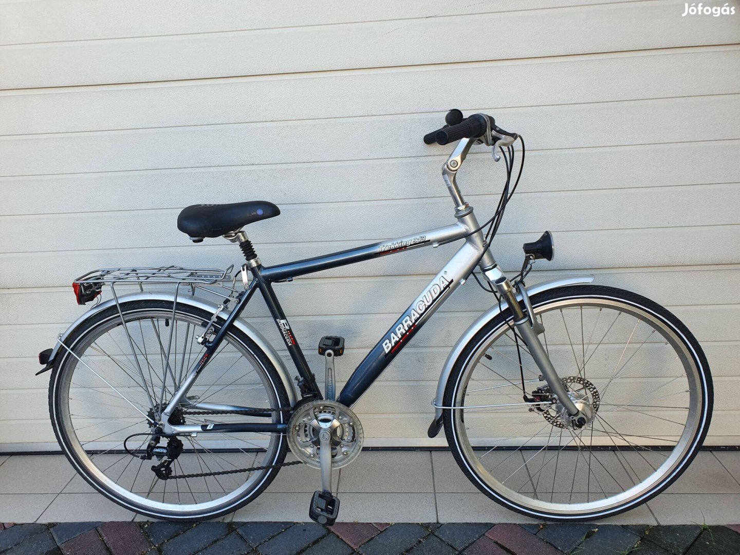 Barracuda 943, 28 colos 3x8 sebességes, aluvázas, agydinamós világítással, duplafalú felnikkel, új külső-belső gumikkal, újszerű gumikkal, elsőteleszkópos, ülésteleszkópos, állítható kormány nyak, elől mechanikus tárcsafék, újszerű állapotban, vázmérete: 50 cm, leszervizelve Férfi kerékpár eladó Kalocsán.