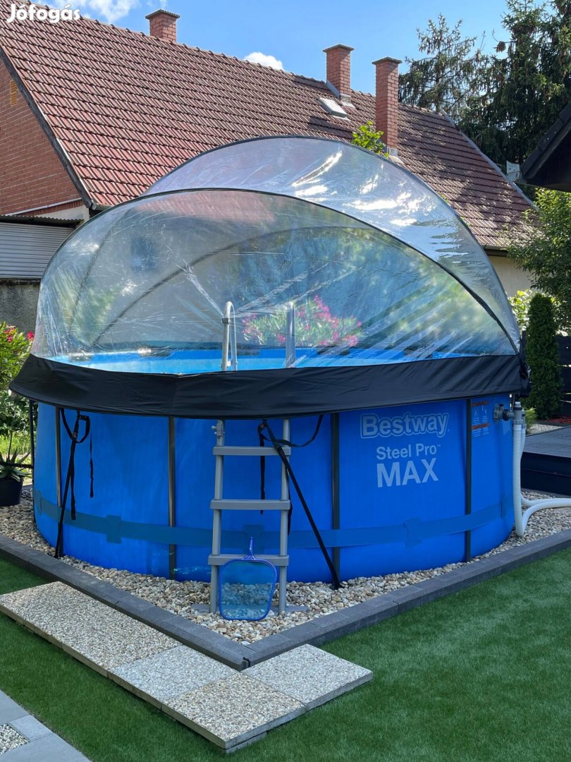 Eladó egy Bestvay Steel Pro Max fémvázas kerti medence. Méret: 366 cm átmérő, 122 cm magasság (kb. 10 250 liter) Létra és szűrő nélkül! Gyorsan fel lehet állítani, 38 mm csatlakozással, szkímmerel együtt. Gyári dobozában, leírással. Megkímélt állapot. A belső - felső karimát, kb: 10 cm sávban kiszívta a nap. A nyári szezon végén megtisztítva, precízen lett tárolva, fagymentes helyen. (a kupola is eladó)