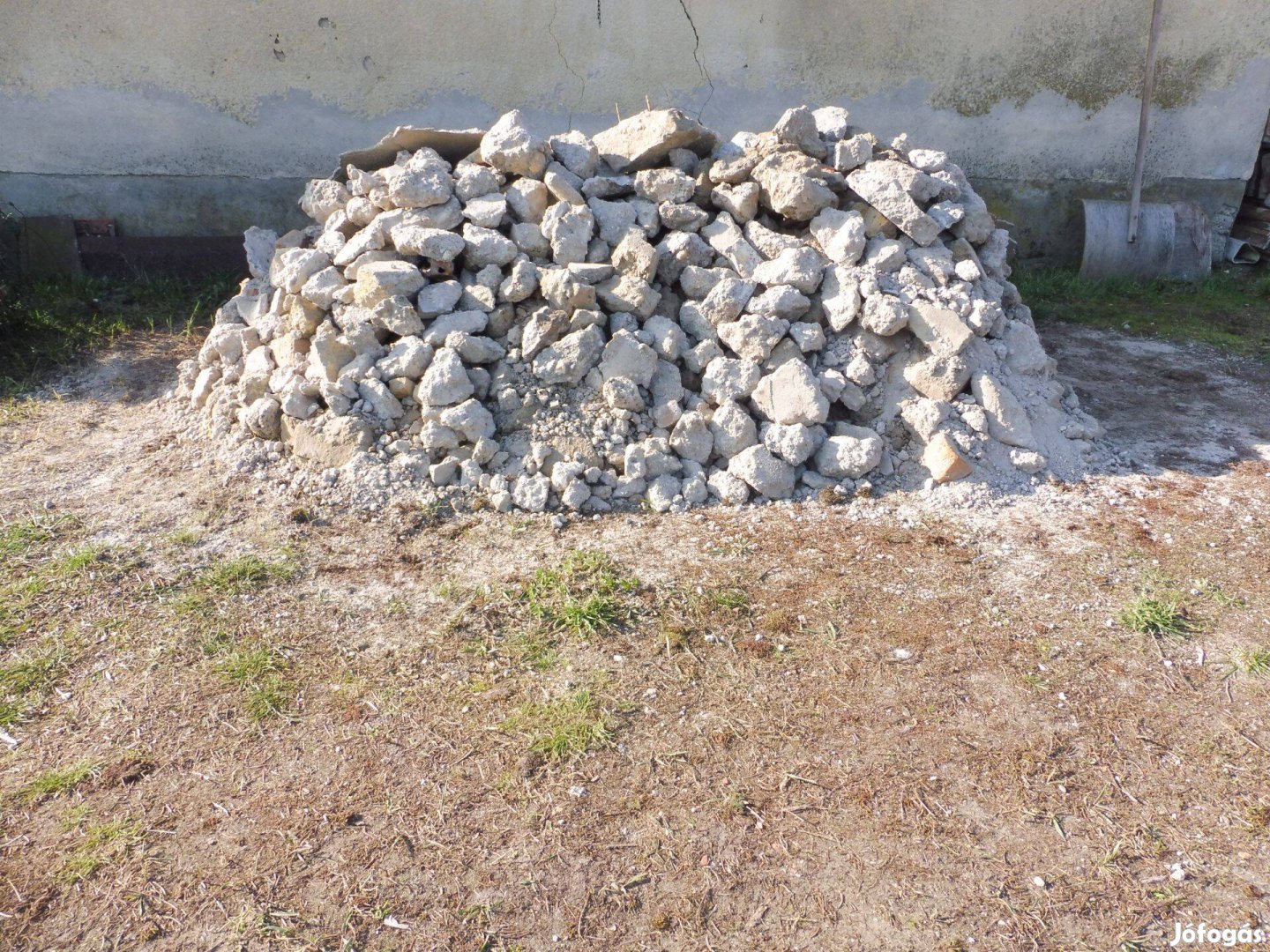 Ingyen elvihető épületlábazat bontásból származó betontörmelék, kb. 1.5-2 m3, könnyen porlik, lapáttal szétverhető. Térkő alá, útalapba, töltésbe. ingyen elvihető.