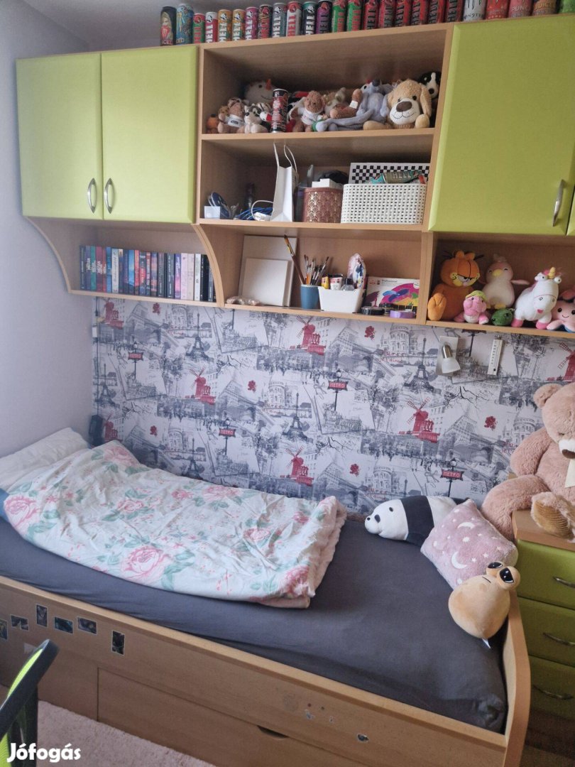 Eladó egy megkímélt újszerű állapotú felnőtt méretű gyerekszoba bútor,íróasztallal,ággyal,polcokkal,szekrényekkel, az eredeti ár töredékéért.
