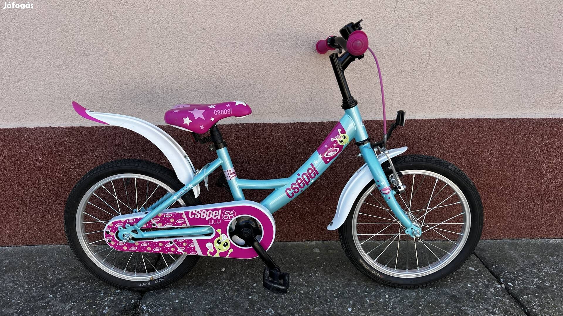 Eladó egy szinte új állapotú Csepel Lily 16-os kontrás gyerek kerékpár türkiz színben.
