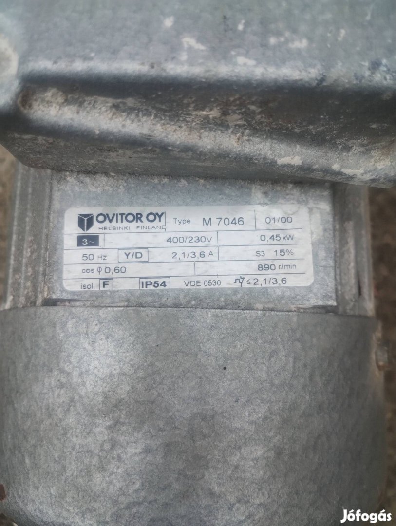 Eladó egy ovitoy oy típusú ( finn) M7046: irányváltós csiga hajtómű motorral