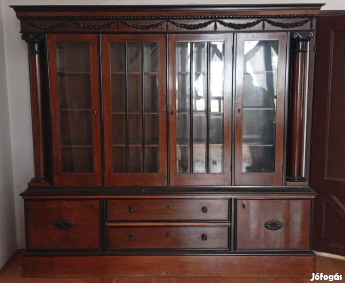 Eladó ez a faragott eklektikus, igen komoly küllemű, akár irodai tárgyalóba is ideális, szépen rendbentartott antik nappali vitrines bútor, melynek mérete: