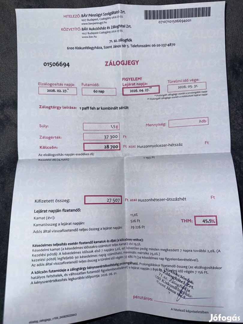 Eladó Zálog papír a képeken látható fülbevalóhoz. Az ár alkuképes. A fülbevaló fehér arany, zalogpapír mellé küldöm az ékszer papírját illetve kérés esetén dobozt.