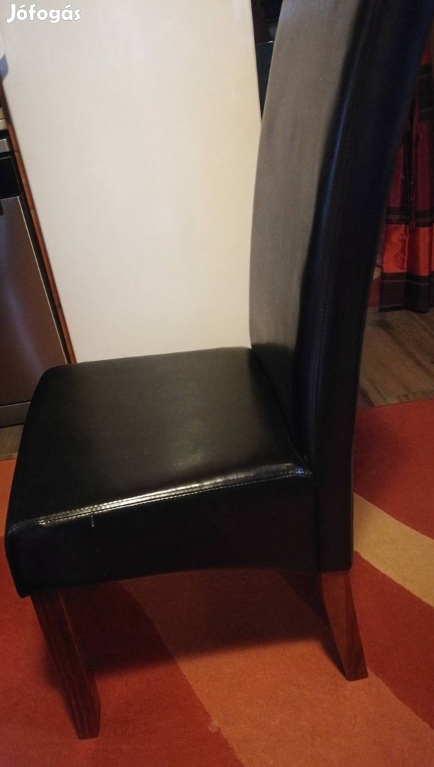 Eladó Kecskeméten a képeken látható fekete bőrrel párnázott üléssel, magas háttámlával, falábakkal rendelkező étkezőszék. 3 db van belőle.