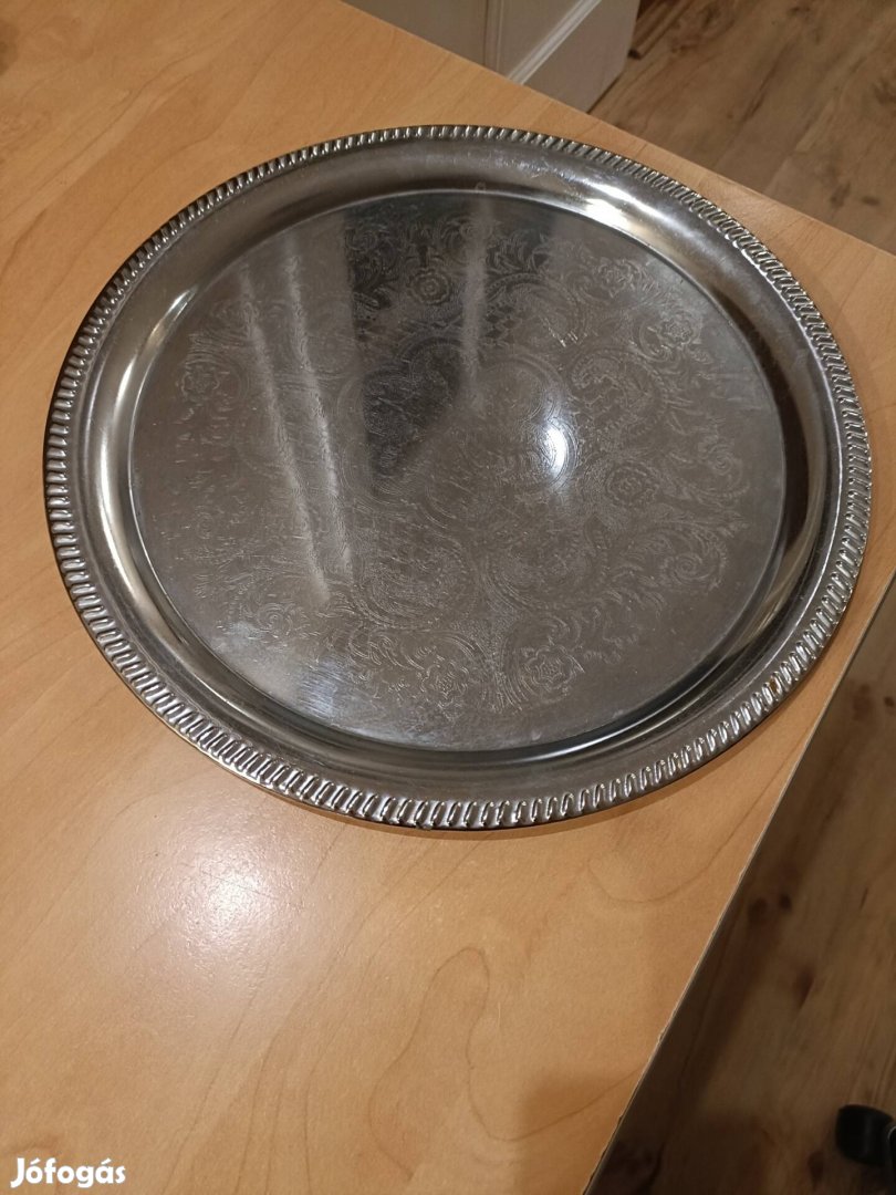 Ezüst színű fém tálca