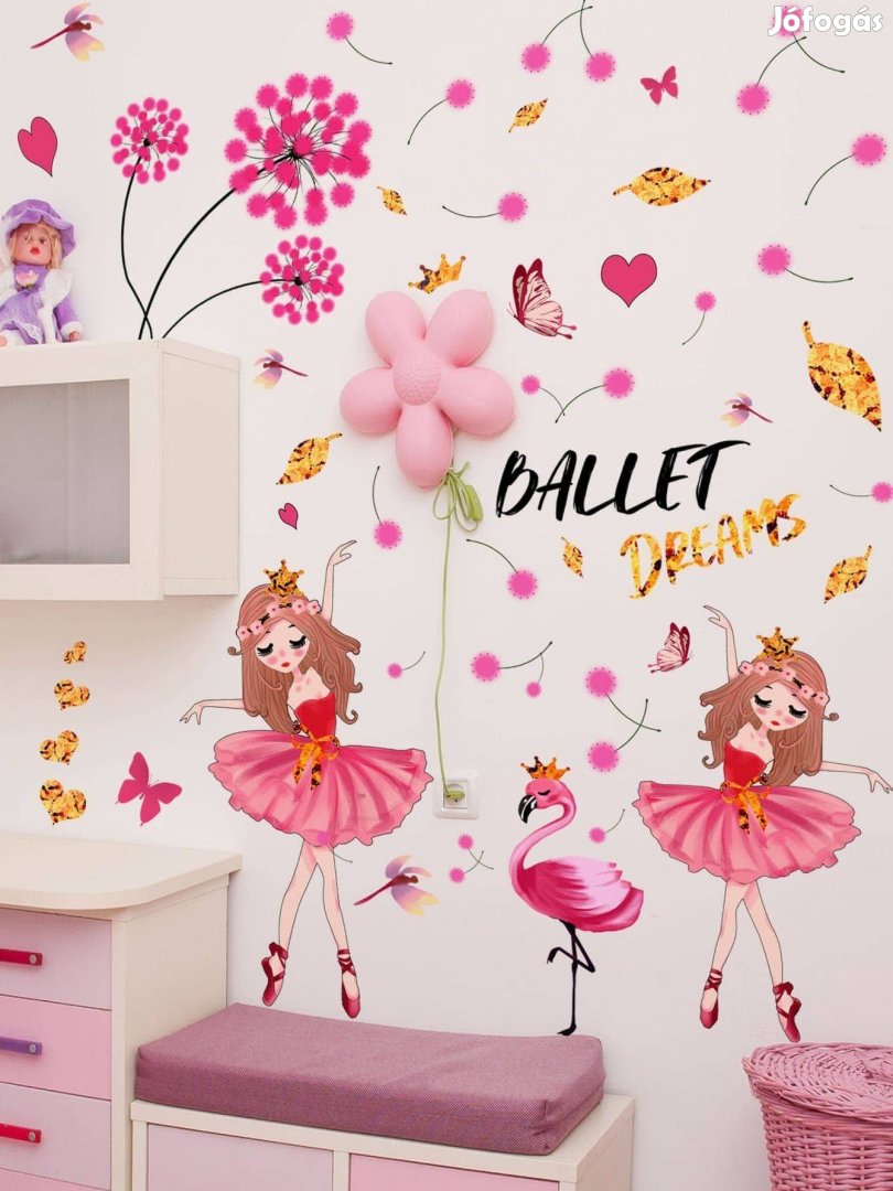 Varázsolja el gyermeke szobáját ezzel a meseszép, öntapadós falmatricával, mely könnyen elhelyezhető a falon, bútoron vagy ablakon. A matricák színes baleriánákat, virágokat, pillangókat ábrázolnak, melyek egyedi hangulatot teremtenek a kisgyermekek szobájában.