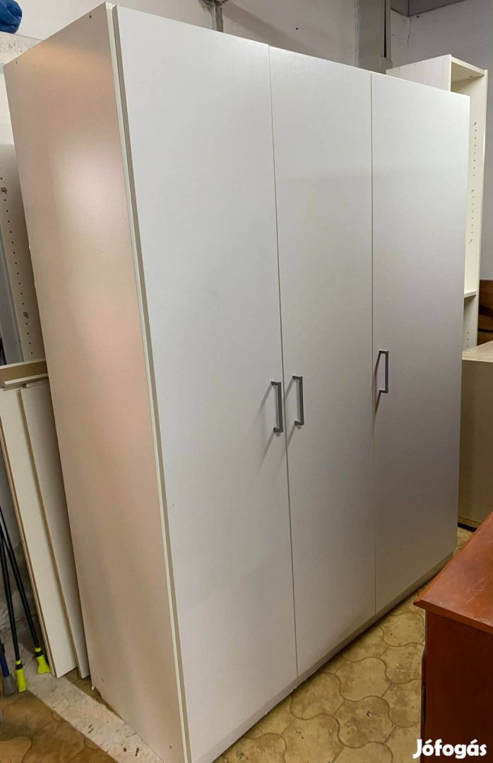 Eladó fehér 3 ajtós gardrób, mérete: 140X51, 180 cm magas. Tágas jól passzítható ruhás szekrény. Kisebb hibái vannak, de semmi szembetűnő.