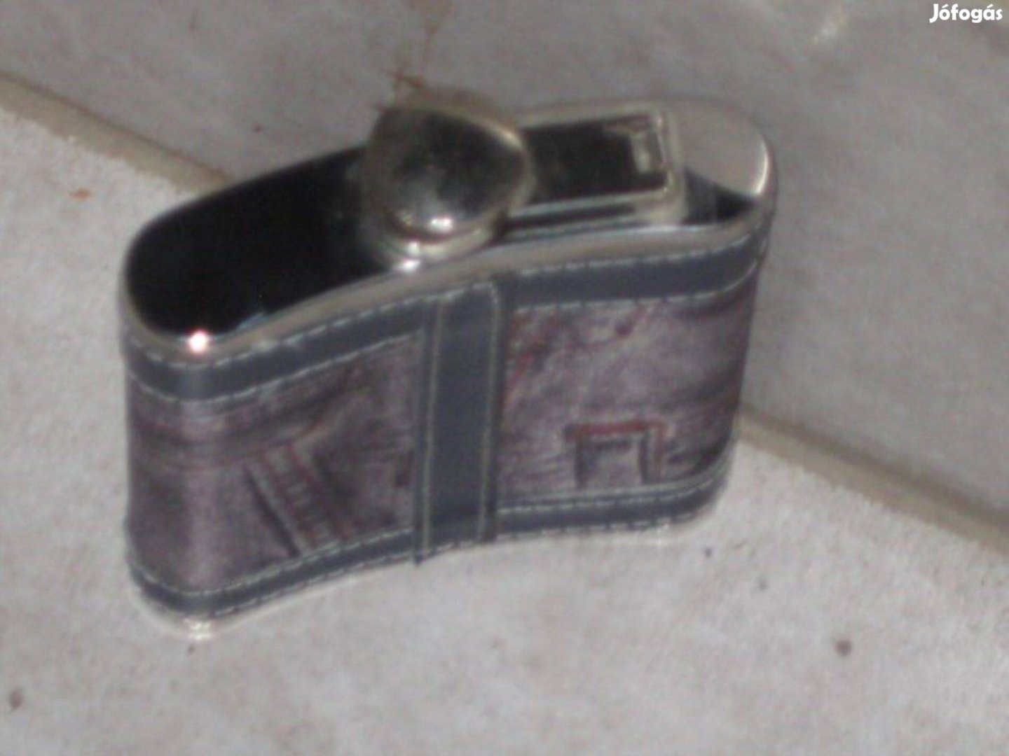 Fémből készült lapos kulacs, flaska eladó farmar hatású anyaggal bevont szép jó állapotú eladó.Ajándékozni is megfelel.