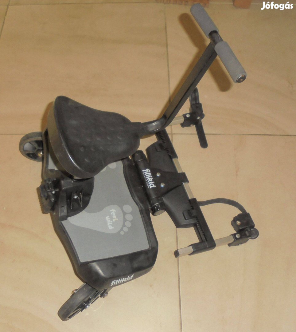 Filliboard Wide testvérfellépő szett A nagyobb testvérek nagyon várják a kistestvér érkezését. Így nagyon is érthető, hogy minden sétának részesei akarnak lenni, és büszkén mutatják meg kistestvérüket mindenkinek. De ha a nagyobb gyermek kicsit elfárad az út során, és pihennie kell, a Filliboard Wide praktikus kiegészítő üléssel az optimális megoldás. A Fillikid testvérfellépő a 4 módon állítható csatlakozó rendszernek köszönhetően univerzális: szélességében kb. 30-47 cm közt és hosszúságban 4 fokozatba állítható csatlakozókarok, 180°-ban elforgatható csuklók, vastagabb babakocsivázhoz is elegendően hosszú pántok. Szinte minden babakocsihoz és sportbabakocsihoz illeszkedik. Könnyen és szerszám nélkül rögzíthető keresztirányú és függőleges vázrendszerre is. A Fillikid testvérfellépő maximális teherbírása 22 kg.