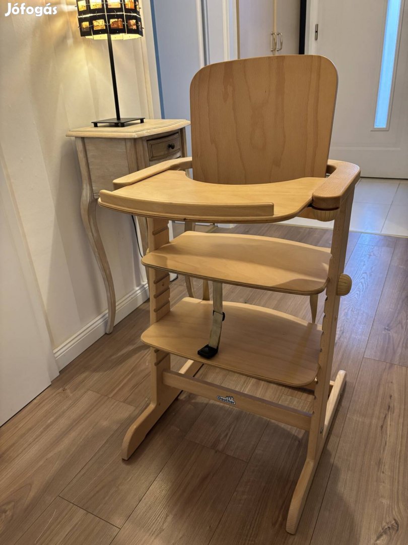 Family Natural fa etetőszék. Újonnan vásároltuk, nagyon minőségi fából készült termék, nagy teherbírású, mégis könnyen mozgatható és rendkívül praktikusan, sokféleképpen állítható szék.