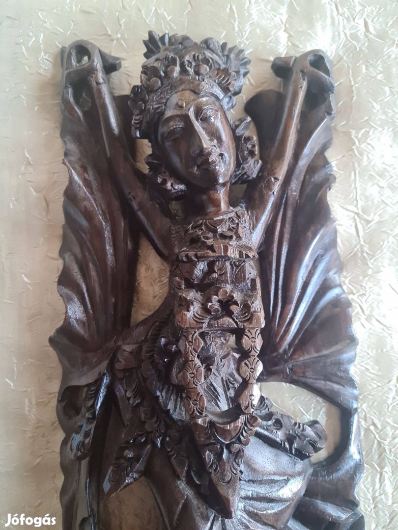 Baliról hozott, kézzel faragott fa szobor.