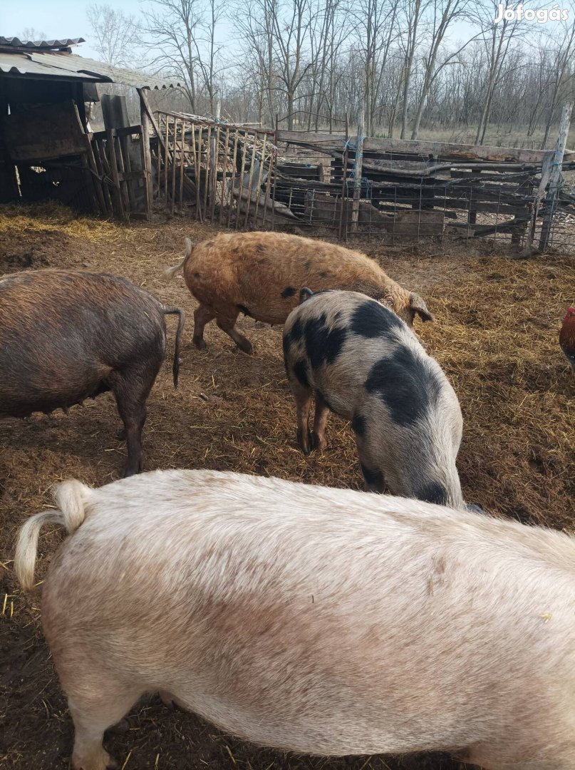 Költöznének 4 hasas anyábol 3 db 2dik elésűek 1 hónapos hasasok 150-160 kg most jónevelők.1 db fehér előhasi disznó 1.5 hónapos hasas 150 kg kb.fehérkannal búgatva.140000 db ja