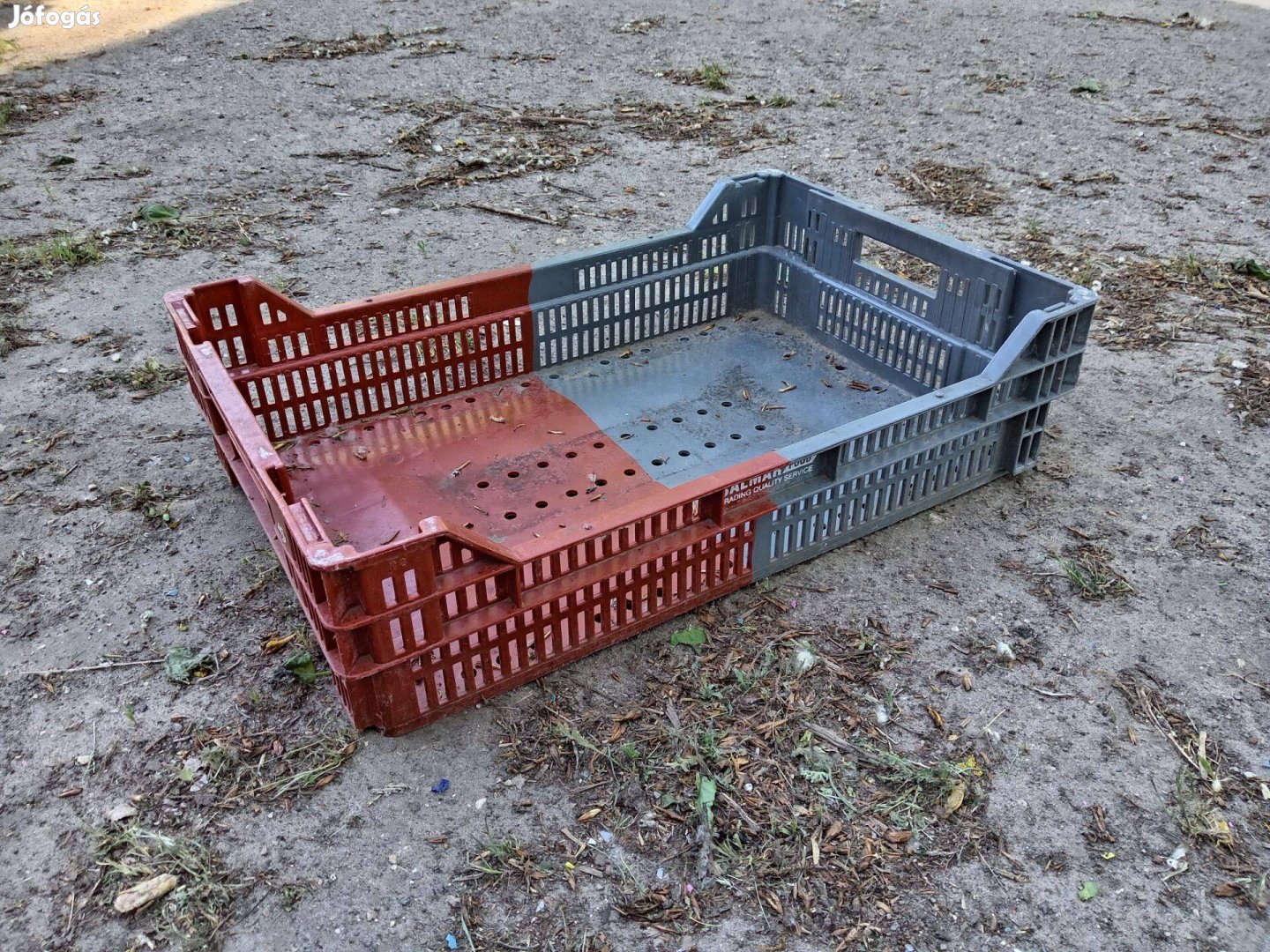 Eladó használt, jó állapotú, egymásba forgatható műanyag rekeszek, 10 kg teherbírásúak.