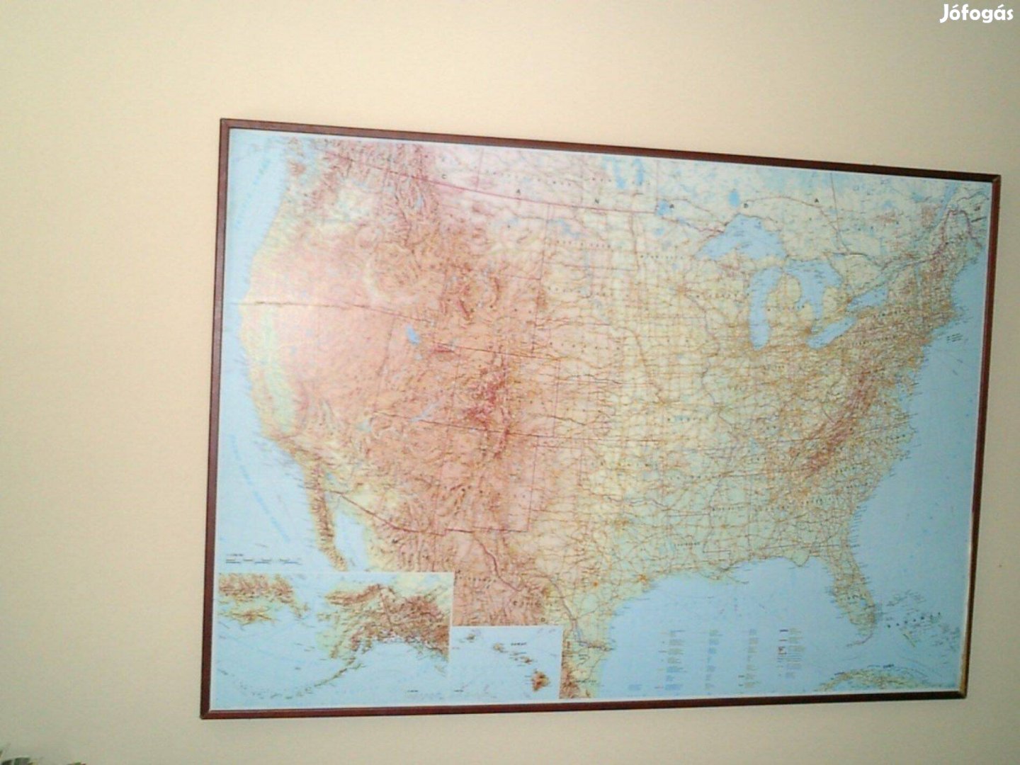 Hatalmas méretű USA térkép tagállamokkal szép állapotban!Fa keretben, ami javított, alig észrevehető! 120*83cm magas.