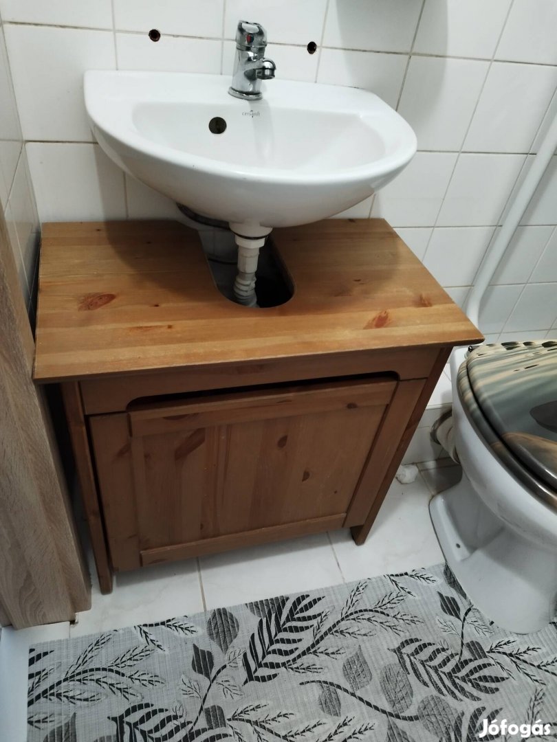 Hibátlan 3 reszes fenyő fürdőszoba szekreny mosdóval, csapteleppel
