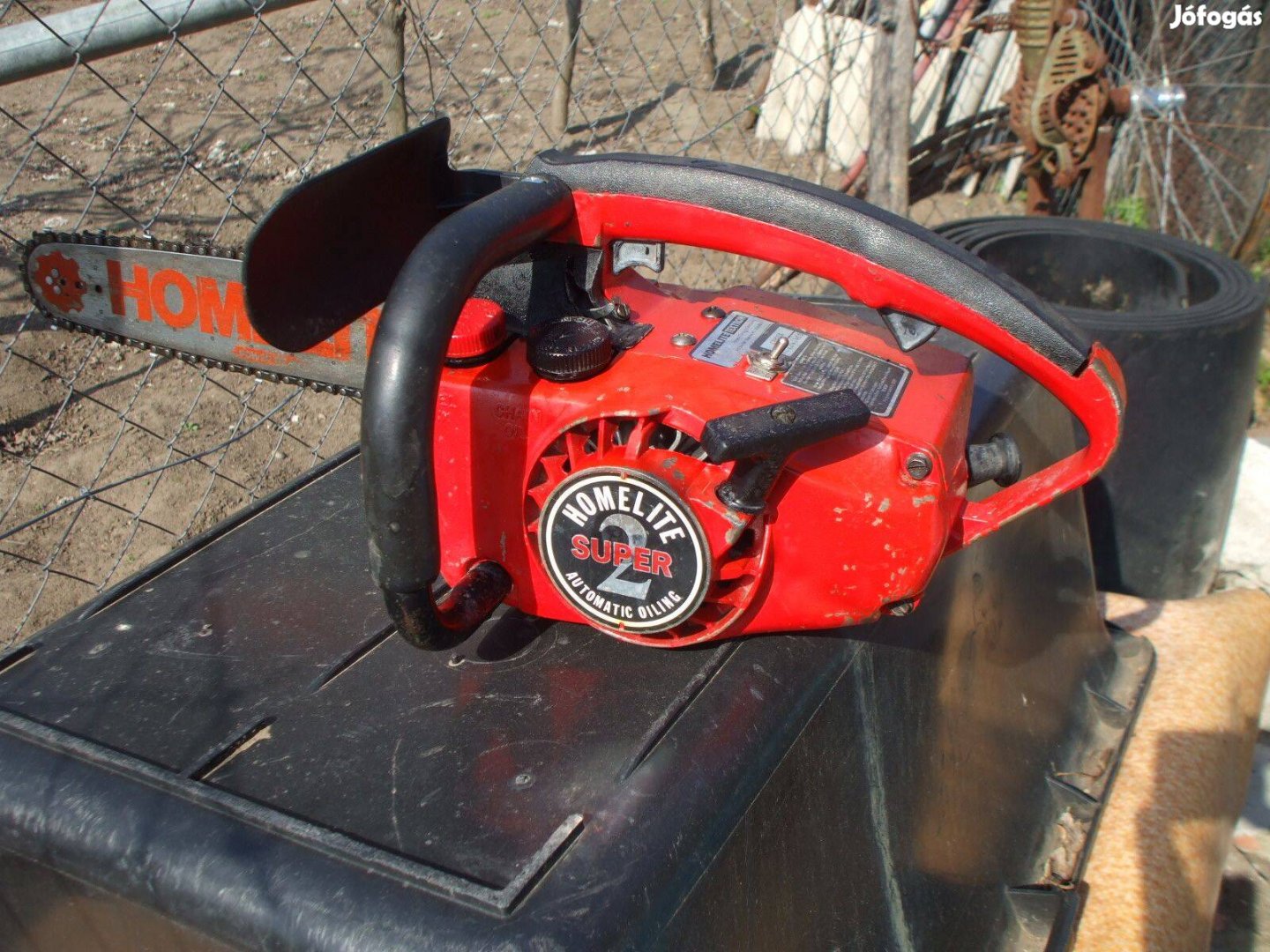 Eladó a képeken is látható homelite super 2 láncfűrész . Tökéletes működés indul hidegen -melegen , fordulatot veszi , olajzás jó . Ez egy teljesen csalódásmentes gép , csak használni kell . Szerintem az első lap van még rajta . Egyetlen hibája a gázmarkolat tetején levő műanyagra ráesett valami és ott van egy kis lyuk .Kiskunfélegyházán van Fox csak előreutalás után és én intézem , vagy személyesen és próba . Érdeklődni telefonon
