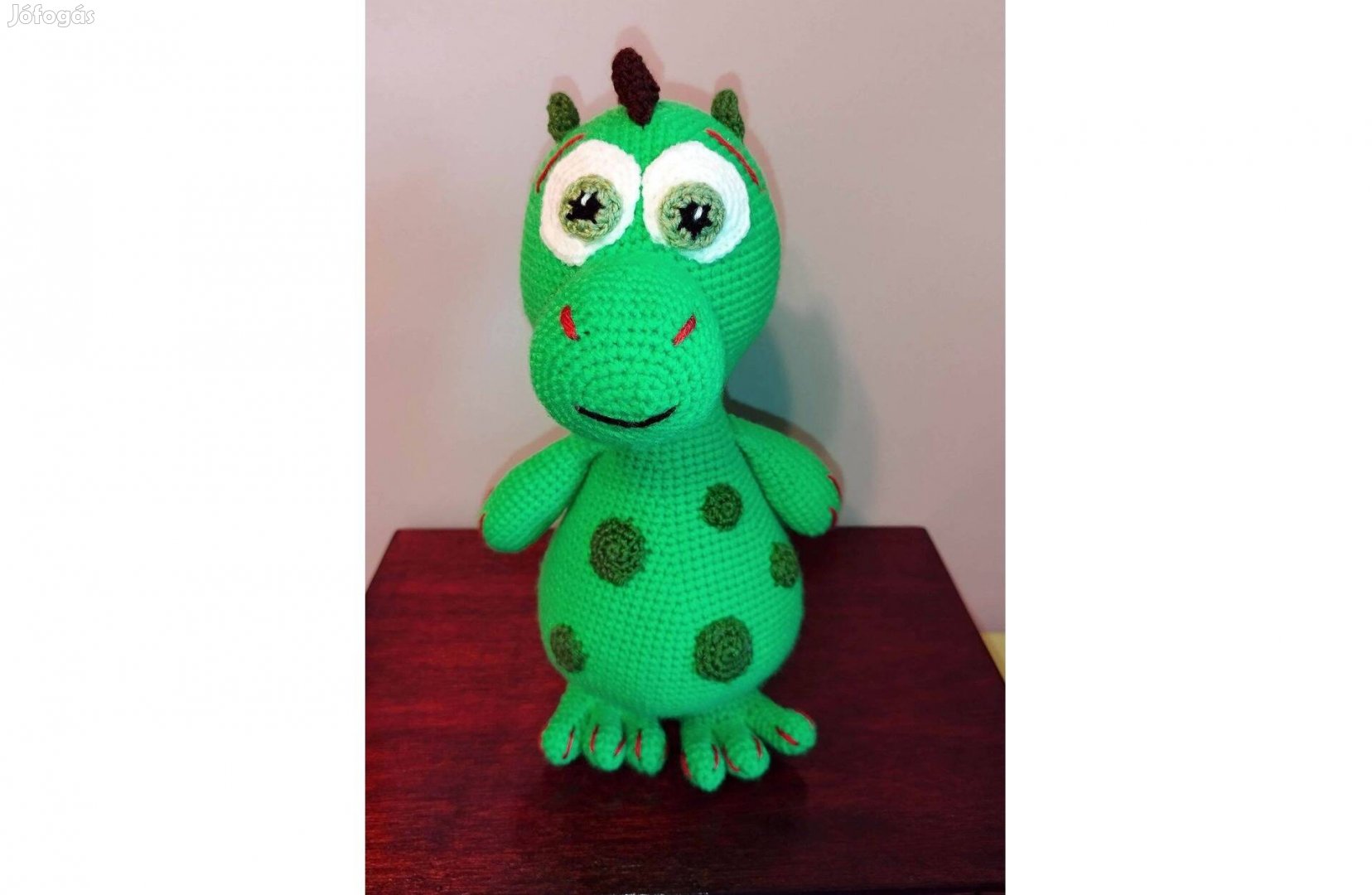 Dínó, amigurumi technikával készült füst és állatszőrmentes környezetben. Kézzel mosható.
