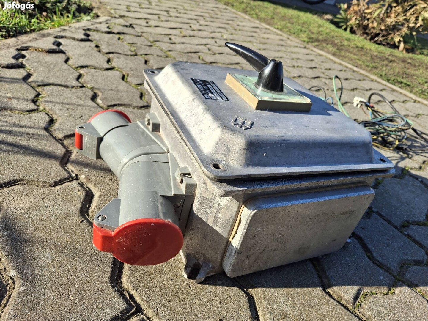 Ideiglenes csatlakozó doboz -220v , + 2×380V , főkapcsolóval FI relével erős aluminium házban gumi tömitéssel építkézésre vagy bármilyen ideiglenes biztonságos áramvételhez