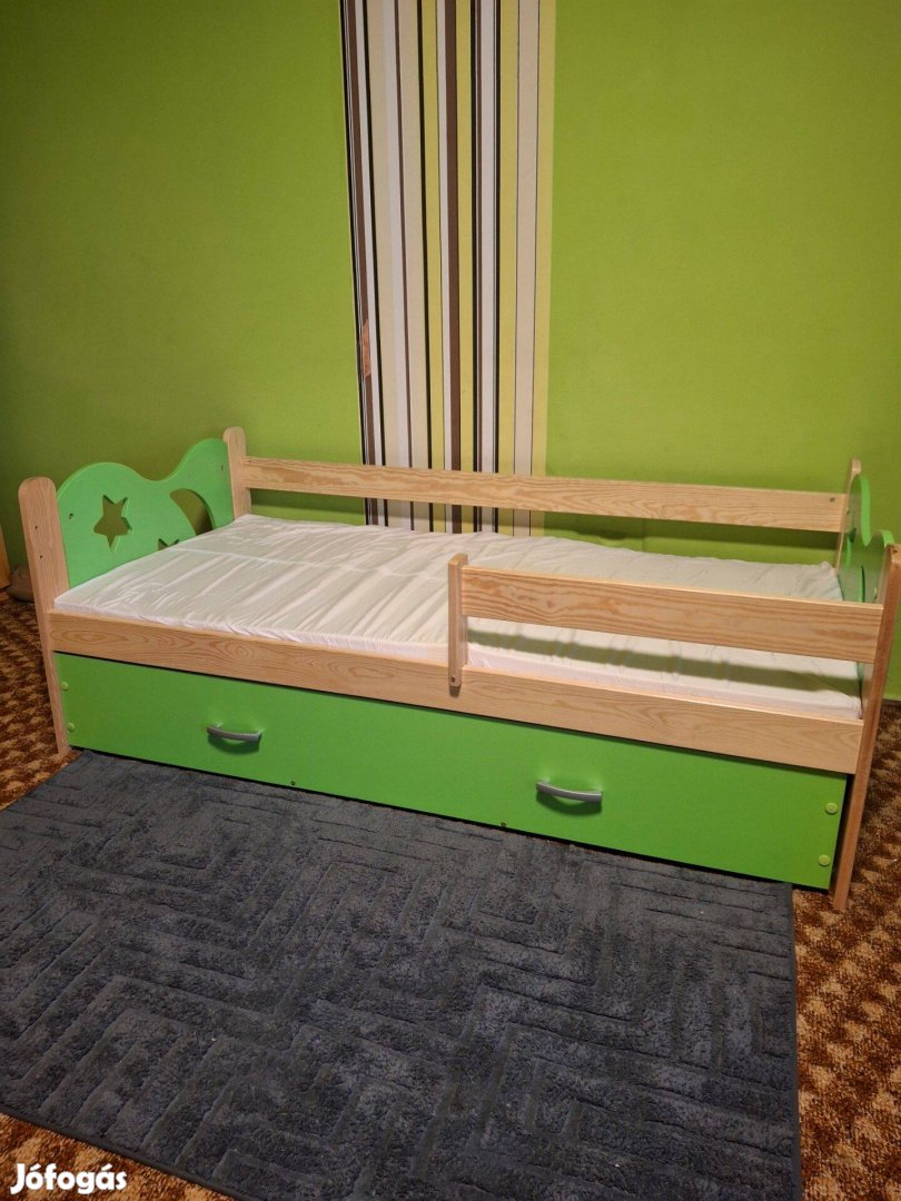 Eladó a képeken látható ifjúsági ágy, kb. 5 alkalommal volt használva. Ágyneműtartó fiókja is van. Szerkezetileg egyben van, apróbb hibái vannak, az ágyvégek rögzítését enyvezni kell, mert az eredeti csavar-fa készletben csak minimális volt, ezért nem igazán rögzült. Az ágyneműtartó alja pozdoria lapos, az egy picit meghajolt a tárolás miatt, de ezt is lehet javítani. Habszivacs matrac van benne, matrac huzattal. A mérete 160x80-as. Szállításban segíteni nem tudok, ára minimálisan alkuképes. Szállítani egyben érdemes, nem lapra szerelve.