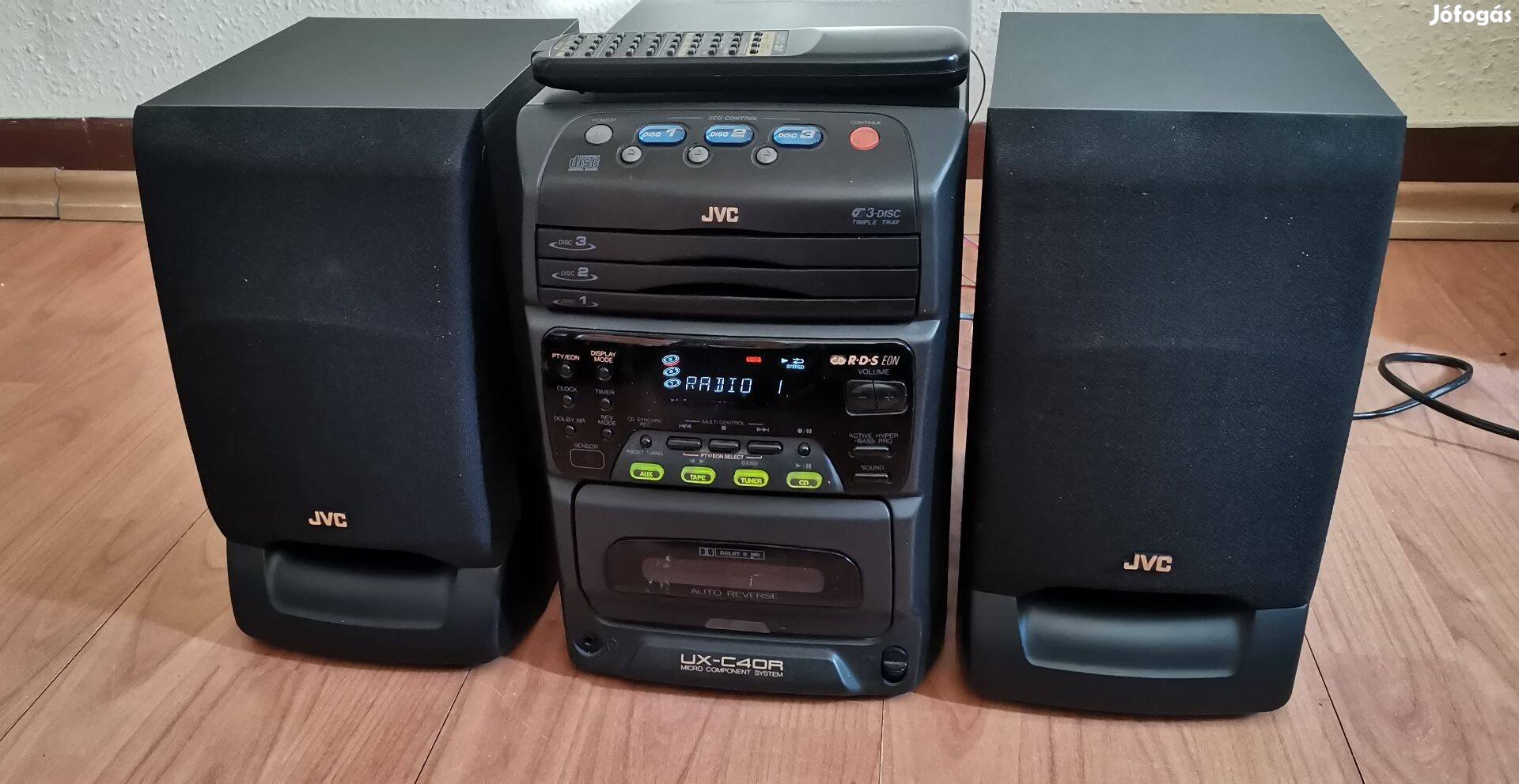 JVC mini hifi minihifi hangfal távirányító rds aux 3 CD-s