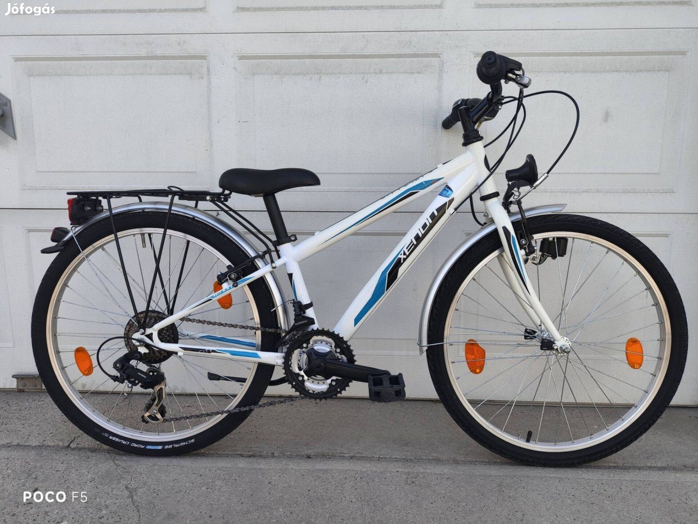 Eladó, a képeken látható osztrák gyártmányú "Xenon City2421" típusú, (A KTM csoport gyártja Ausztriában!), 24 colos könnyű Chrom-Molibden vázas gyermek kerékpár. A kerékpár pár alkalommal volt használva, olyan mint egy új! Gyönyörű esztétikai és kiváló műszaki állapotban van! Felszereltsége a következő.: Minőségi Chrom-Molibden váz, 21 sebességes "Shimano-Tourney" hátsó váltó, Shimano első váltó, "Shimano-Revoshift" kormány váltó, Shimano lánc és lánctányér, Shimano hajtókar, Shimano kerékagyak, állítható magasságú kormányszár, aluminium kormány, gyorszáras nyeregcső, kényelmes gél üllés, aluminium csomagtartó, műanyag sárvédők, aluminium felnik, minőségi "Schwable-Road Cruiser" defekt tűrős és fényvisszaverő csíkos gumik, prízmák, oldaltámasz, Stb.Stb. Kérésre több fotót is küldök, sajnos a Jófogás nem enged több fotót feltölteni! Személyesen Izsákon lehet megnézni, (hétvégén is!) vagy házhoz szállítással is megvásárolható! Számlával, adásvételi szerződéssel! Kérem nézze meg további hírdetéseimet is! Köszönöm!
