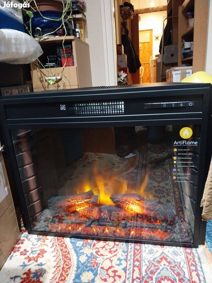Az Artiflame márkájú fűtőelem kandallóba beépíthető. 30 m2 felfűtésére alkalmas, több fokozatú, termosztátos, 1800 W-os. Szép látványt nyújt, sajnos már nem került beépítésre. A külső mérete 61,5x44,5x13 cm. A beépíthető rész mérete: 58,5x43,5x13 cm. Ha Kecskemétre kell vinni, díjtalanul segítek elvinni, a város környékére megbeszélés alapján.