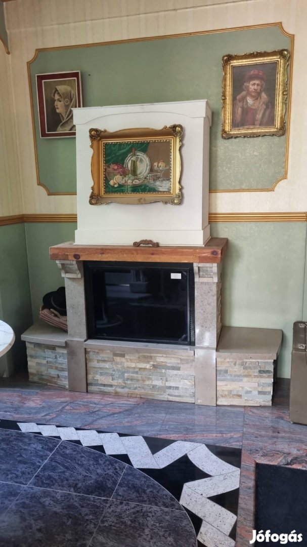 Mészkőből és quarcitból készült kandalló burkolat . Kandalló bemutató terem felszámolása miatt kiárusításra kerülő kandalló burkolat