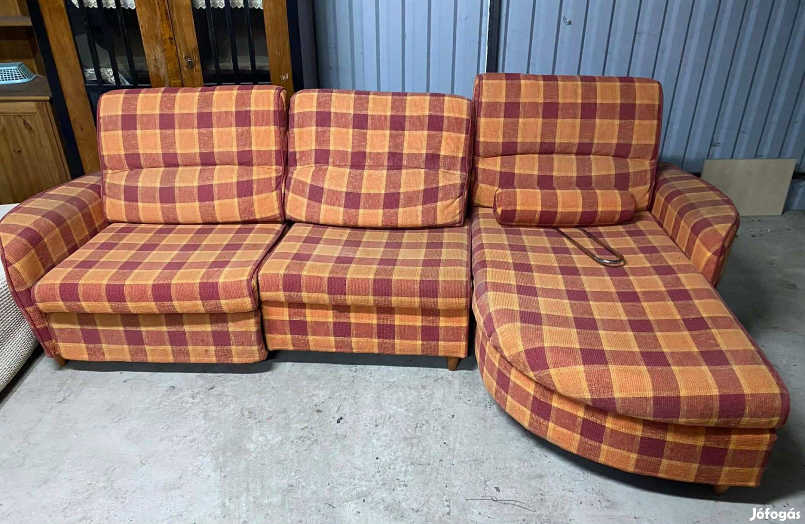 Eladó színes, kockás mintájú sarokülő garnitúra, mérete: 267X153 cm
