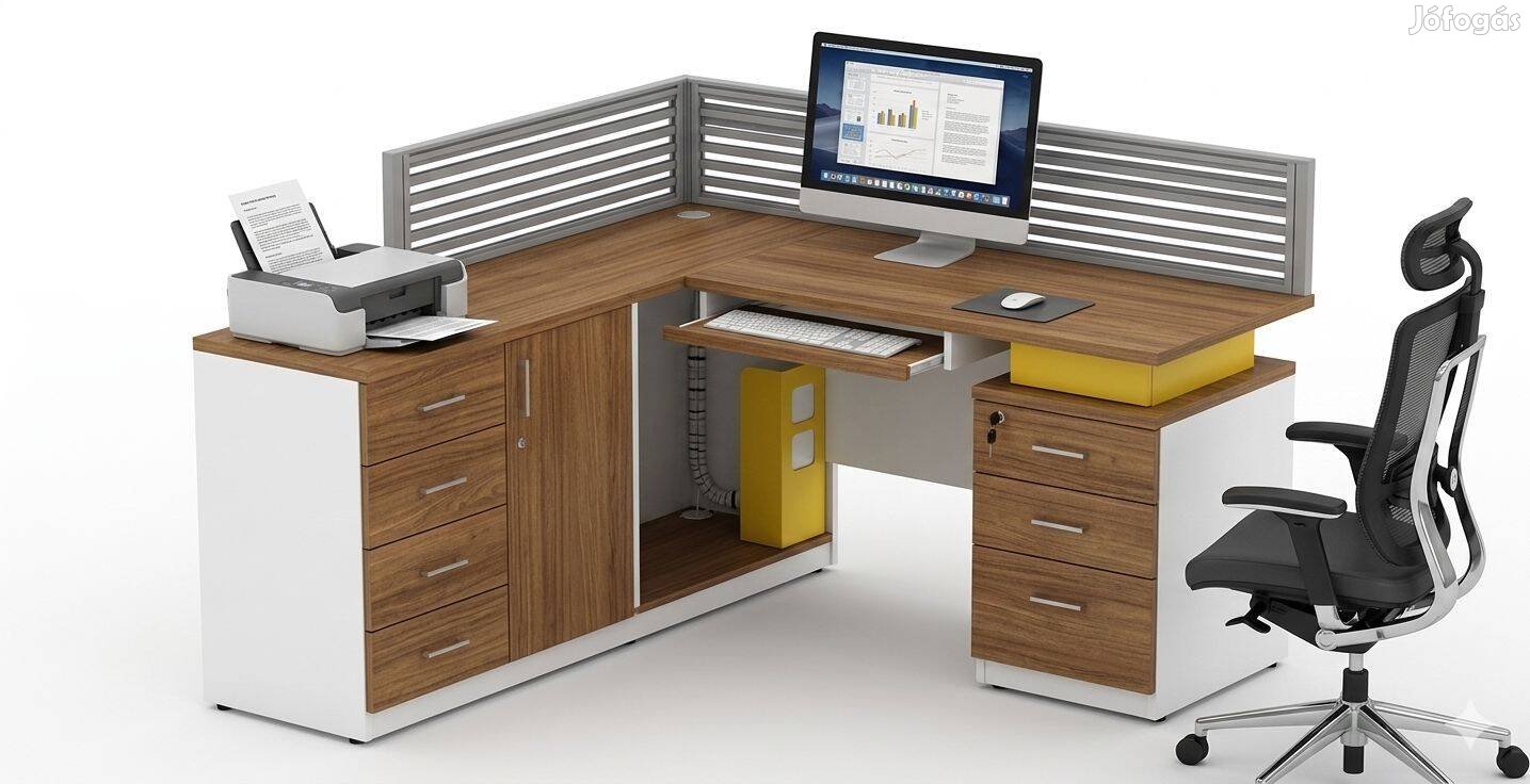 Növelje csapata hatékonyságát ezzel a modern, helytakarékos kialakítású sarokíróasztallal. Tökéletes választás open-office környezetbe, vagy otthoni munkavégzésre (home office).