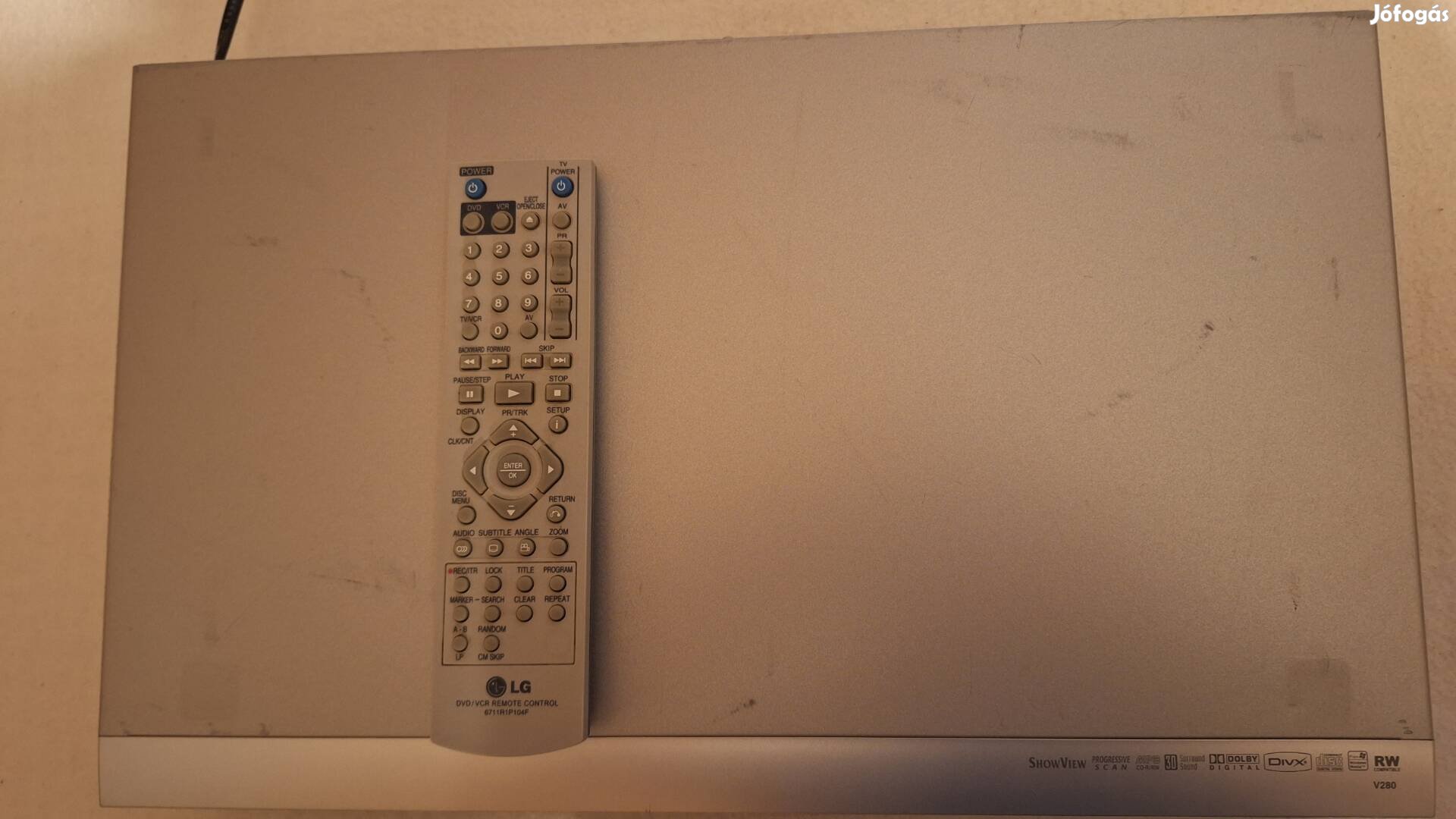 LG videó combo, gyári távirányítóval eladó. A készülék vhs része kiválóan működik, a dvd rész nehezen játsza le a gyári lemezeket, viszont az írott lemezeket probléma nélkül lejátsza.