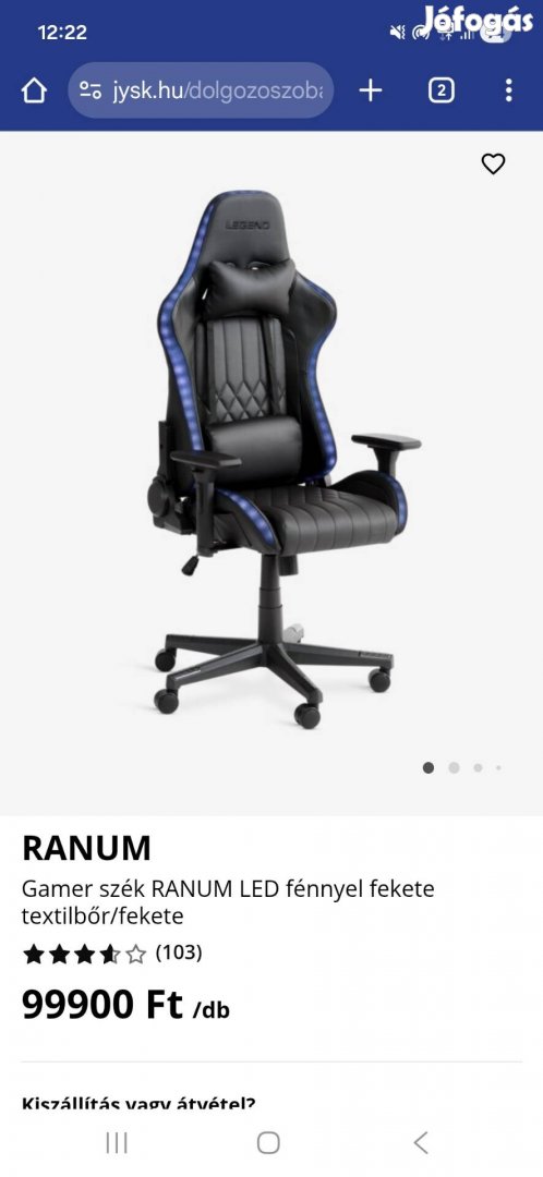 Beépített LED világítással, amely több színben is működik, így igazán hangulatos megjelenést ad. A görgők kissé elhasználódtak, de a szék ettől függetlenül hibátlanul használható.