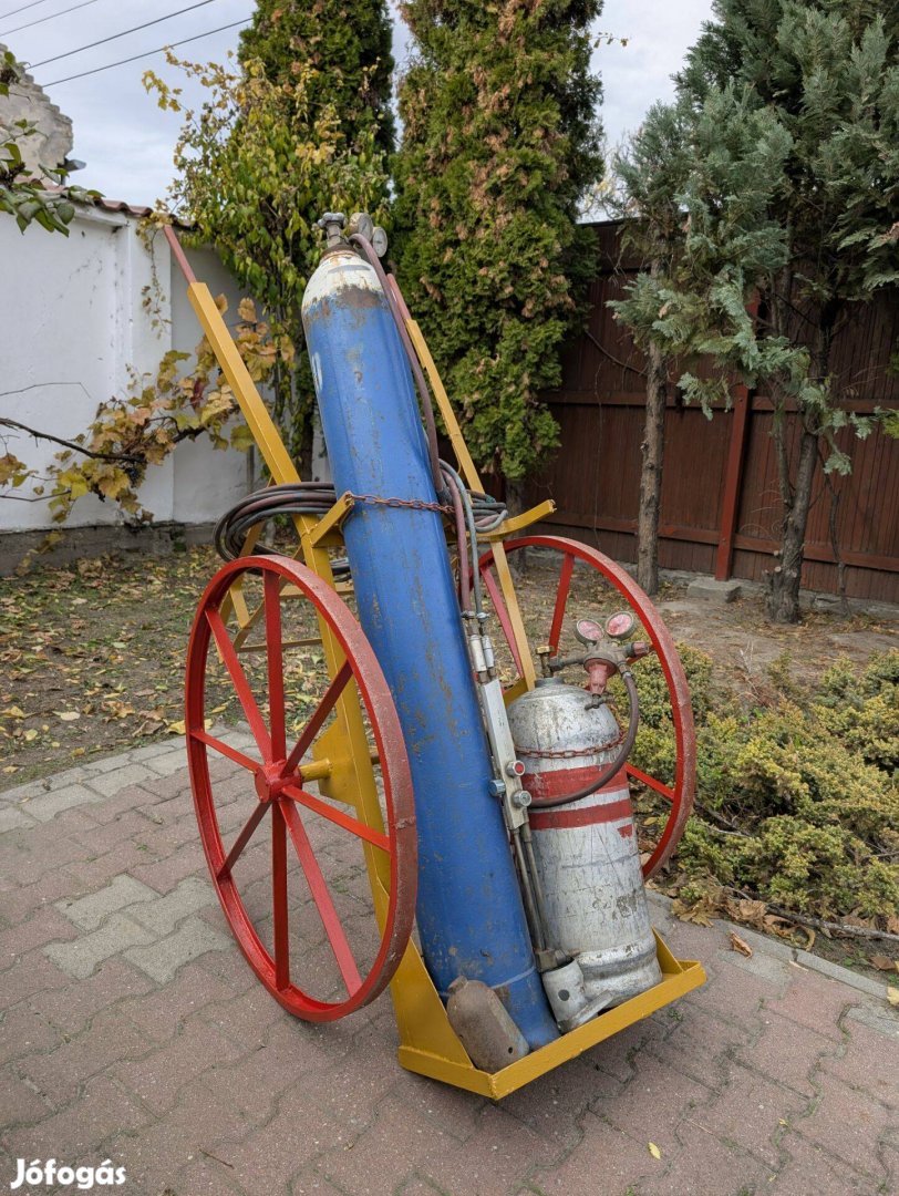 Eladó a képeken látható lángvágó felszerelés, kocsival együtt. Linde típusú, saját, cserélhető az oxigén palack.