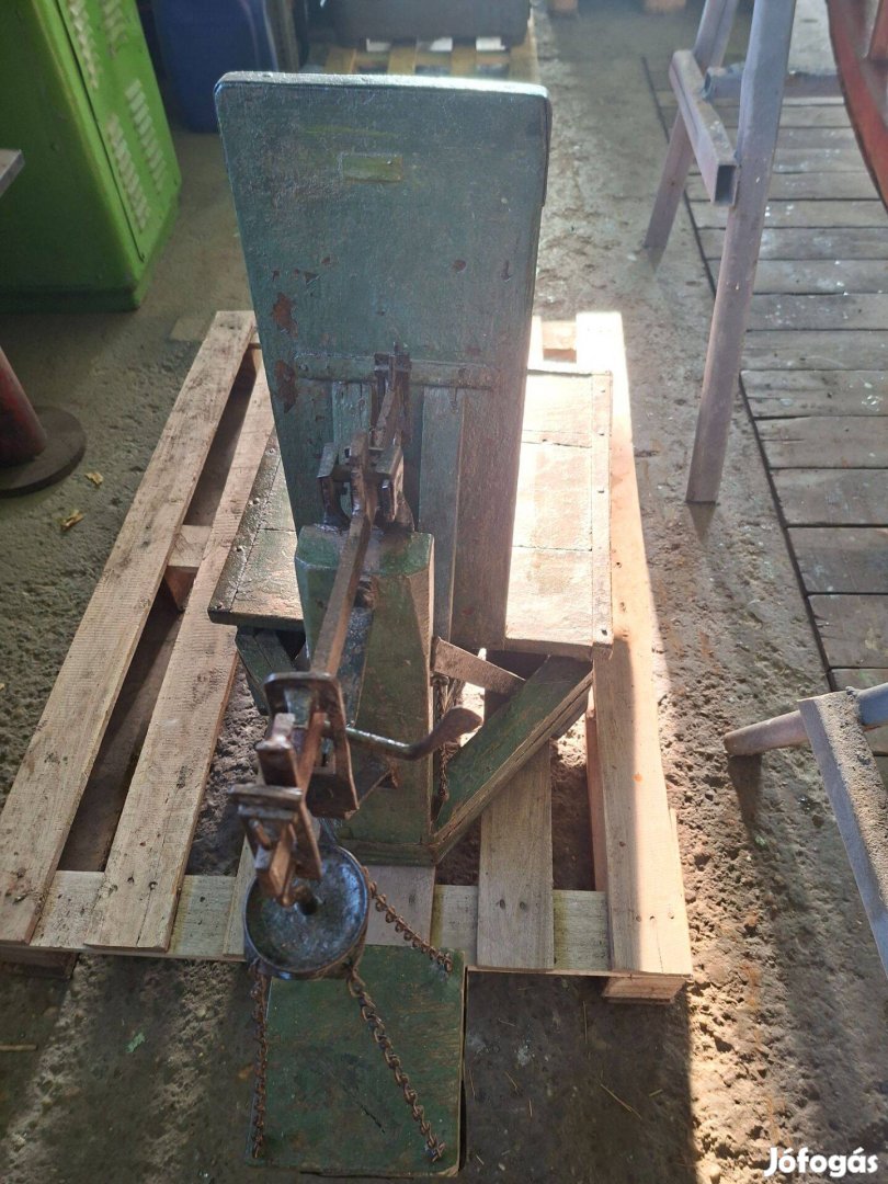 Elafdóa képeken látható, hagyományos régi tipusú, 100 kg méréshatárú, mázsa sulyokkal együtt.