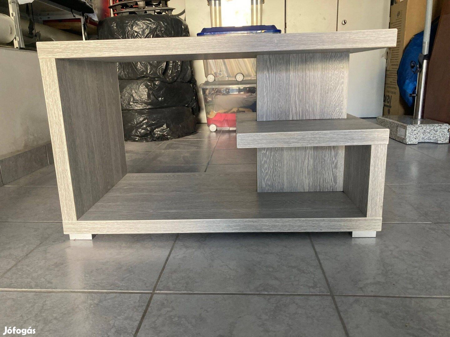 Eladó egy jó állapotú, két szintes, modern kialakítású dohányzóasztal.