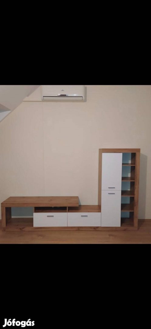 Eladó egy letisztult stílusú nappali bútorszett. Színe: wotan tölgy és fehér